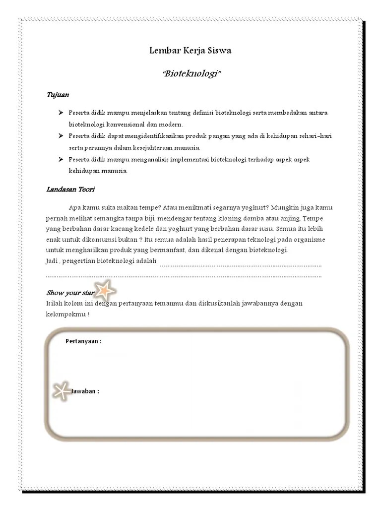 Lembar kegiatan siswa (lks) merupakan suatu bahan ajar cetak berupa lembaran berisi tugas yang di dalamnya berisi petunjuk.